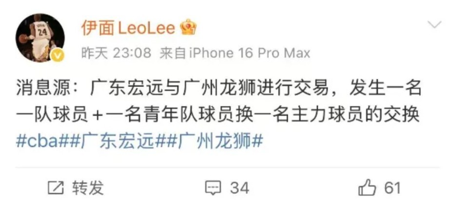 后续有媒体进一步解读,广东队送出的筹码大概率是黄明依+夏振峰,得到广州队的焦泊乔。